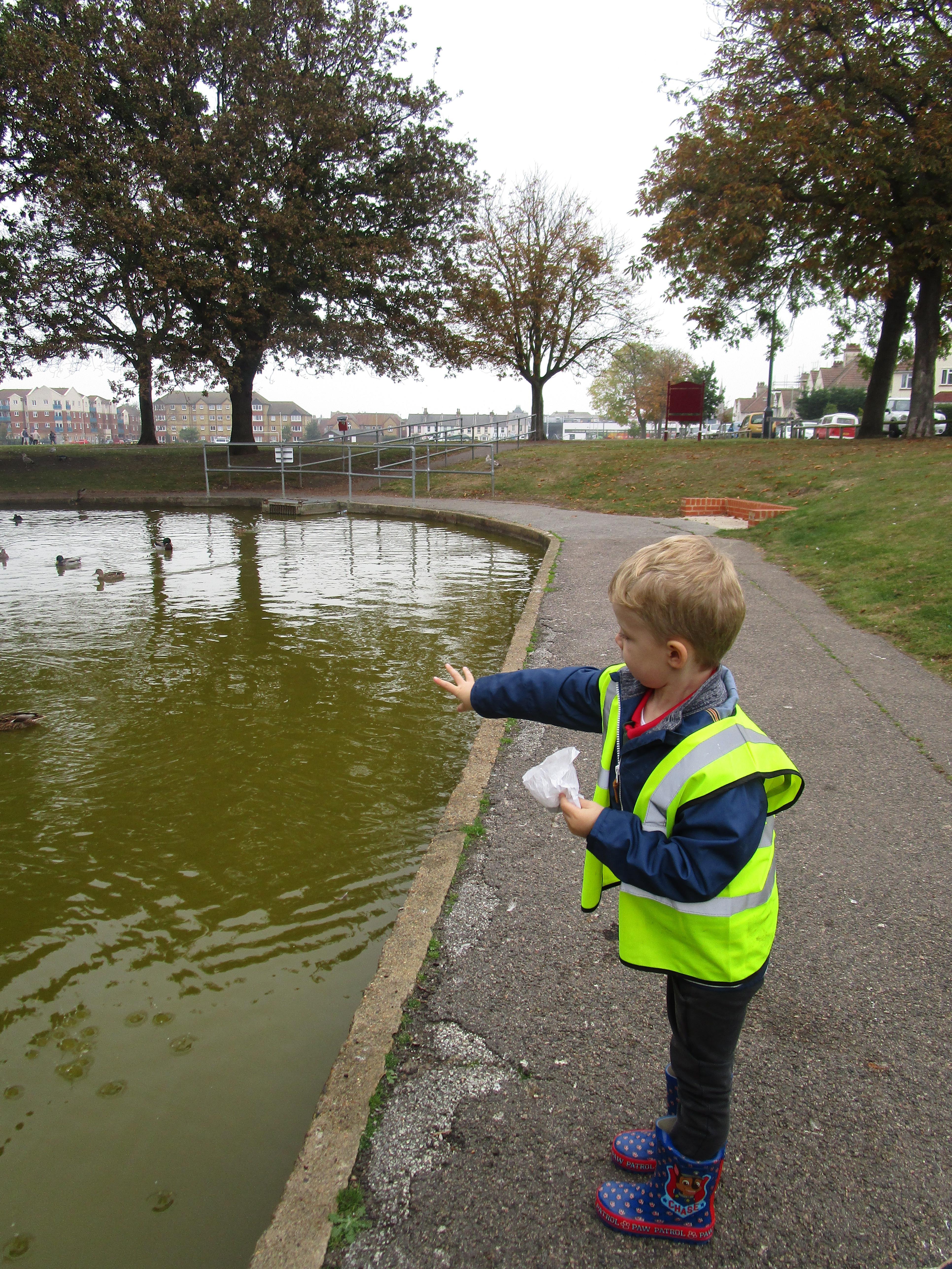 Visiting Herne Bay Memorial Park to look for signs of Autumn and feeding the ducks. This gave us an opportunity to talk about respect for our environment and feeding birds the correct food!